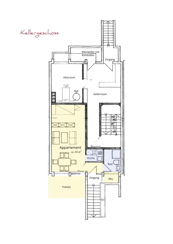 Separater Wohneinheit im Souterrain mit eigener Terrasse, Küche und Bad