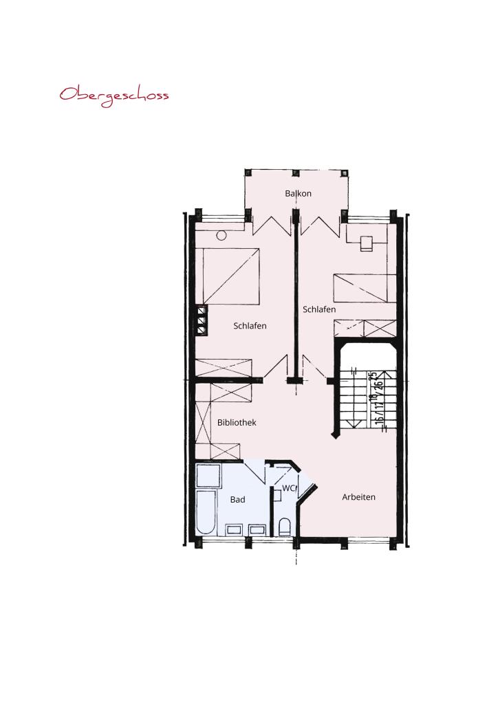 Im Obergeschoss befinden sich zwei großzügige Schlafzimmer mit jeweils einem Zugang zum Balkon, ein komfortables Tageslichtbad mit Wanne und Dusche, einem separatem WC mit direktem Zugang ins Bad sowie viel Platz für vielfältige Nutzungsmöglichkeiten wie beispielsweise ein Büro.