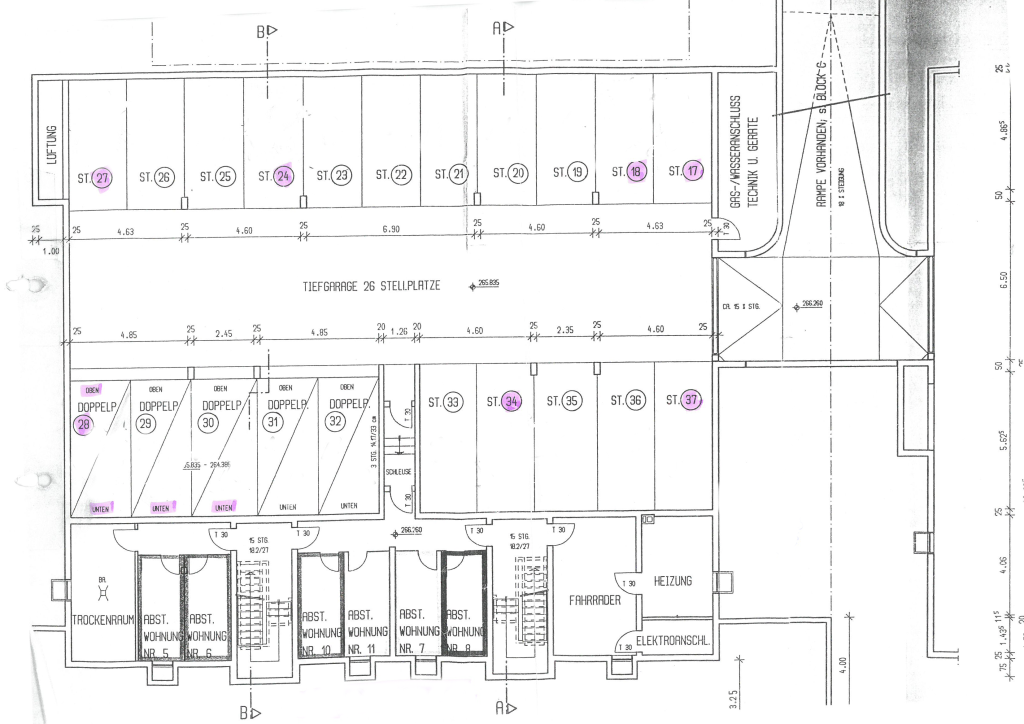 Tiefgarage im UG mit insgesamt 26 Stellplätzen