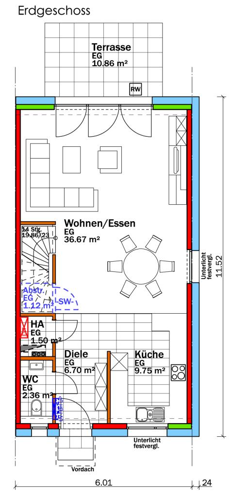 • Fußbodenheizung in allen Etagen, mit Einzelraumsteuerung